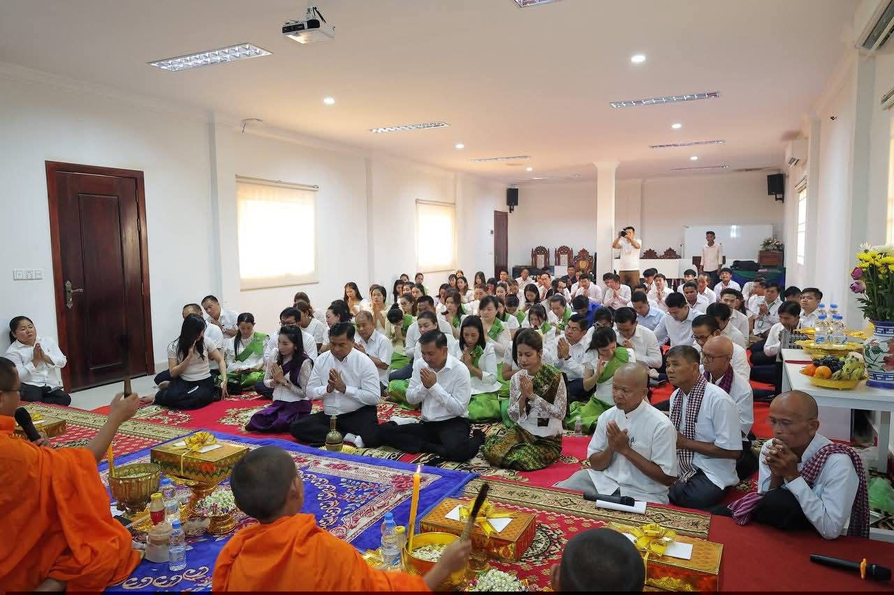 (ខេត្តតាកែវ) នារសៀលថ្ងៃពុធ ទី៨ ខែមេសា ឆ្នាំ២០២៦ ឯកឧត្តម ធាម ច័ន្ទពិសិទ្ធ ប្រធានសាលាដំបូងខេត្តតាកែវ និងលោកជំទាវ ឯកឧត្តម ឯក ឆេងហួត ព្រះរាជអាជ្ញាអមសាលាដំបូងខេត្តតាកែវ និងលោកជំទាវ ព្រមជាមួយ លោក លោកស្រី ចៅក្រម និងព្រះរាជអាជ្ញារង ក្រឡាបញ្ជី និងមន្រ្តីរាជការនៅសាលាដំបូង និងអយ្យការអមសាលាដំបូងតាកែវទាំងអស់ បាននិមន្តព្រះសង្ឃសូត្រមន្តចម្រើនព្រះបរិត្ត ដើម្បីសុំសេចក្តីសុខ សិរីសួស្តី ក្នុងឱកាសត្រៀមអបអរសាទរពិធីបុណ្យចូលឆ្នាំថ្មី ប្រពៃណីជាតិខ្មែរ ដែលនឹងឈានចូលមកដល់ក្នុងពេលឆាប់ៗខាងមុខនេះ។